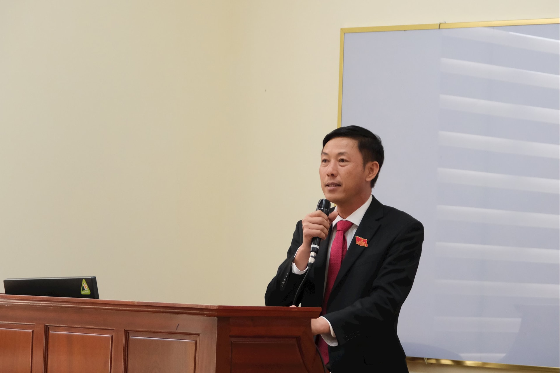 Đồng chí Bùi Huy Thành, Ủy viên Ban Thường vụ Tỉnh ủy, Giám đốc Sở Dân tộc và Tôn giáo Lâm Đồng, Tổ trưởng Tổ thảo luận số 5 điều hành buổi thảo luận