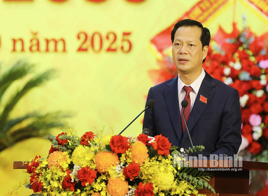Đồng chí nhấn mạnh, sau 2 ngày làm việc nghiêm túc, khẩn trương, dân chủ và trách nhiệm, với tinh thần “Đoàn kết - Trách nhiệm - Kỷ cương - Đột phá - Phát triển”, Đại hội đại biểu Đảng bộ tỉnh Ninh Bình lần thứ I, nhiệm kỳ 2025 - 2030 đã hoàn thành nội dung, chương trình đề ra. Đại hội là đợt sinh hoạt chính trị sâu rộng trong toàn Đảng bộ, toàn quân và toàn dân trong tỉnh; là dấu mốc lịch sử quan trọng mở ra thời cơ, vận hội mới; đồng thời, đặt ra yêu cầu cao hơn đối với công tác lãnh đạo, chỉ đạo và tổ chức thực hiện các nhiệm vụ chính trị, đưa Ninh Bình ngày càng phát triển nhanh và bền vững, cùng cả nước bước vào Kỷ nguyên mới - Kỷ nguyên vươn mình, phát triển giàu mạnh, văn minh và hạnh phúc.