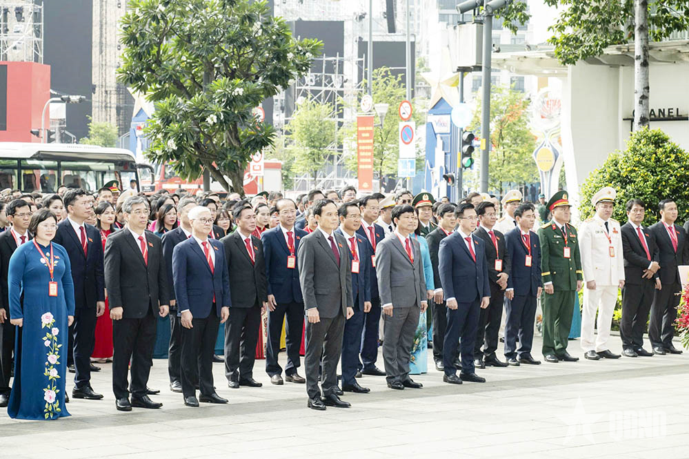Lãnh đạo TP Hồ Chí Minh và các đại biểu dâng hoa Tượng đài Chủ tịch Hồ Chí Minh.