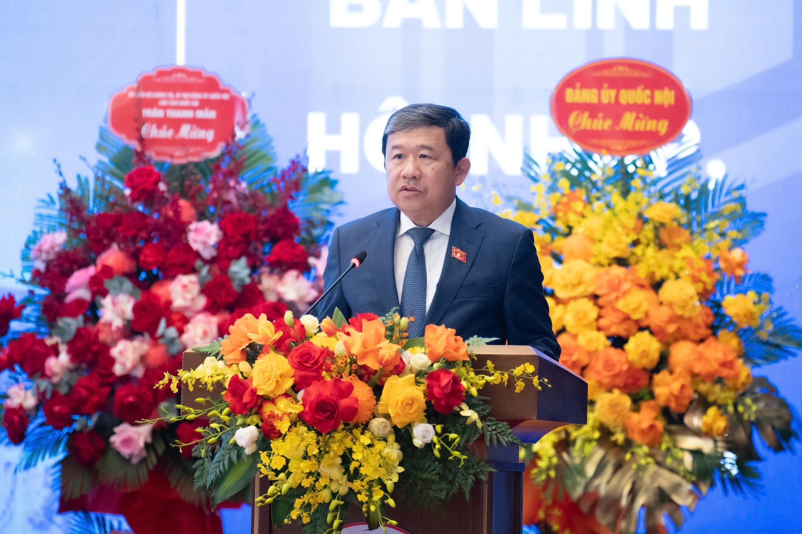 Phó Bí thư chuyên trách Đảng ủy Quốc hội Nguyễn Hồng Diên và các Phó Bí thư Đảng ủy Quốc hội tặng hoa chúc mừng Đại hội