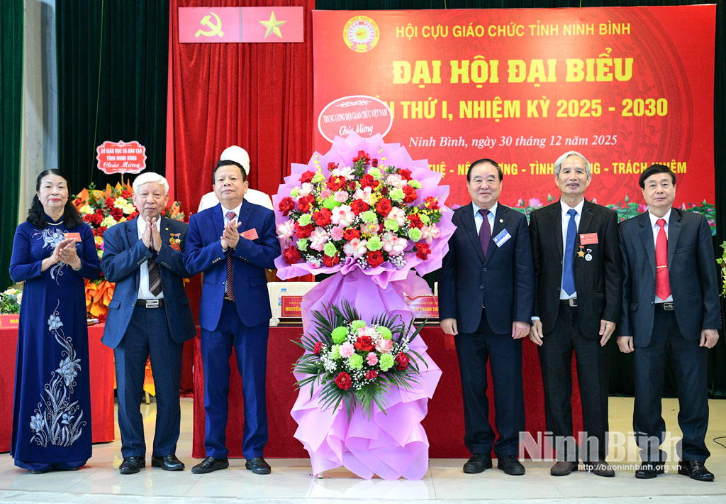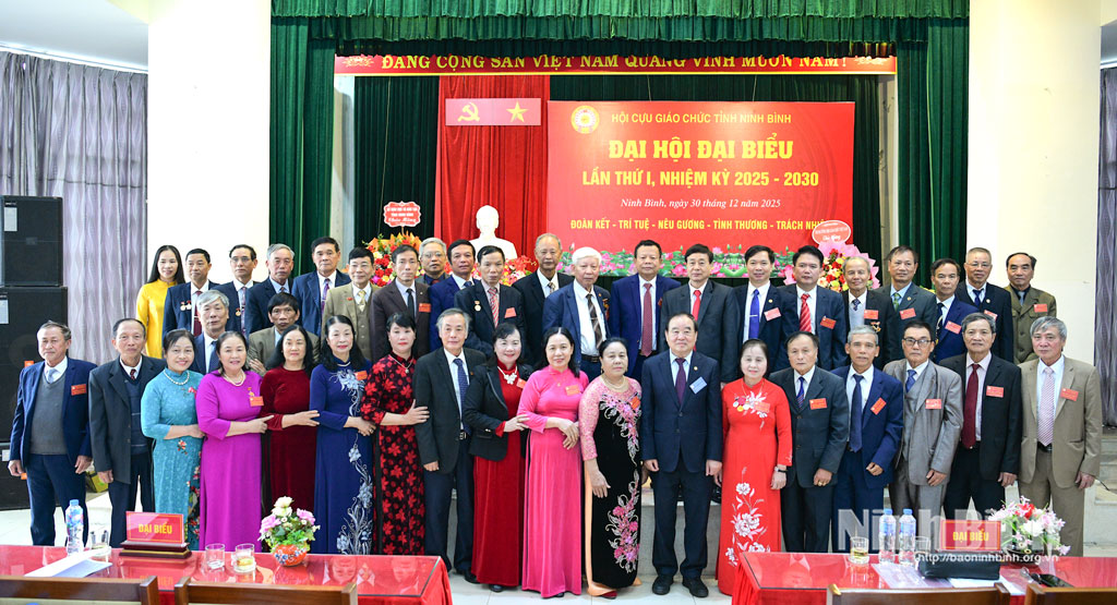 Các đại biểu chụp ảnh lưu niệm với Ban Chấp hành Hội Cựu giáo chức tỉnh Ninh Bình nhiệm kỳ 2025-2030.