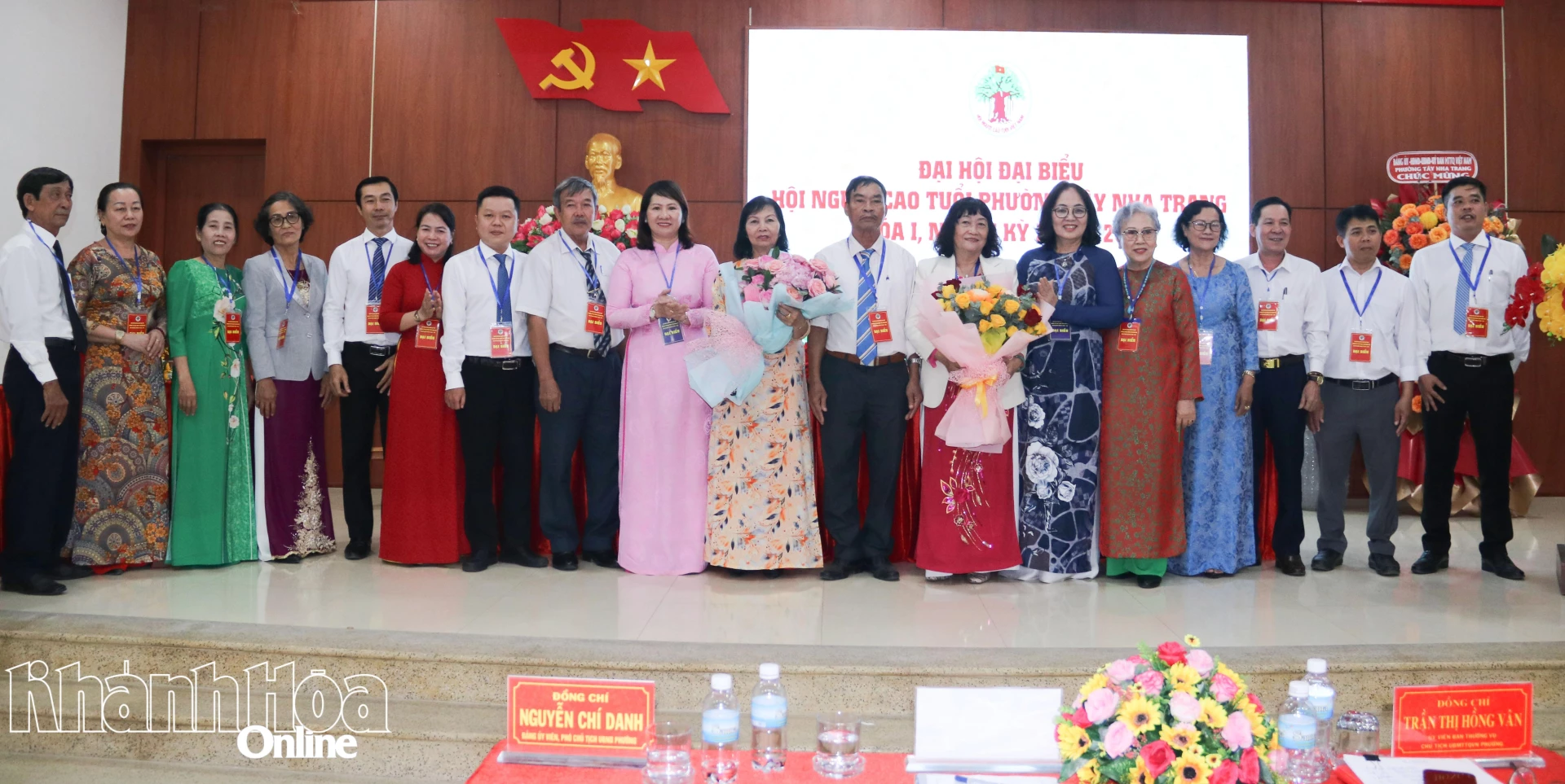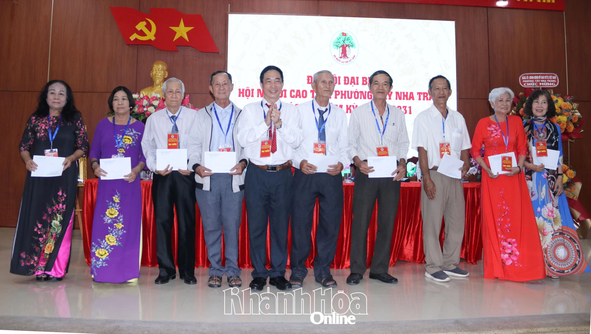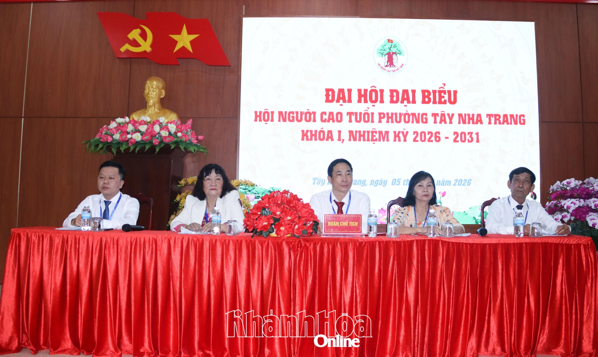 Lãnh đạo Hội Người cao tuổi tỉnh và lãnh đạo Ủy ban MTTQ Việt Nam phường Tây Nha Trang tặng hoa chúc mừng Ban Chấp hành Hội Người cao tuổi phường nhiệm kỳ 2026 - 2031.