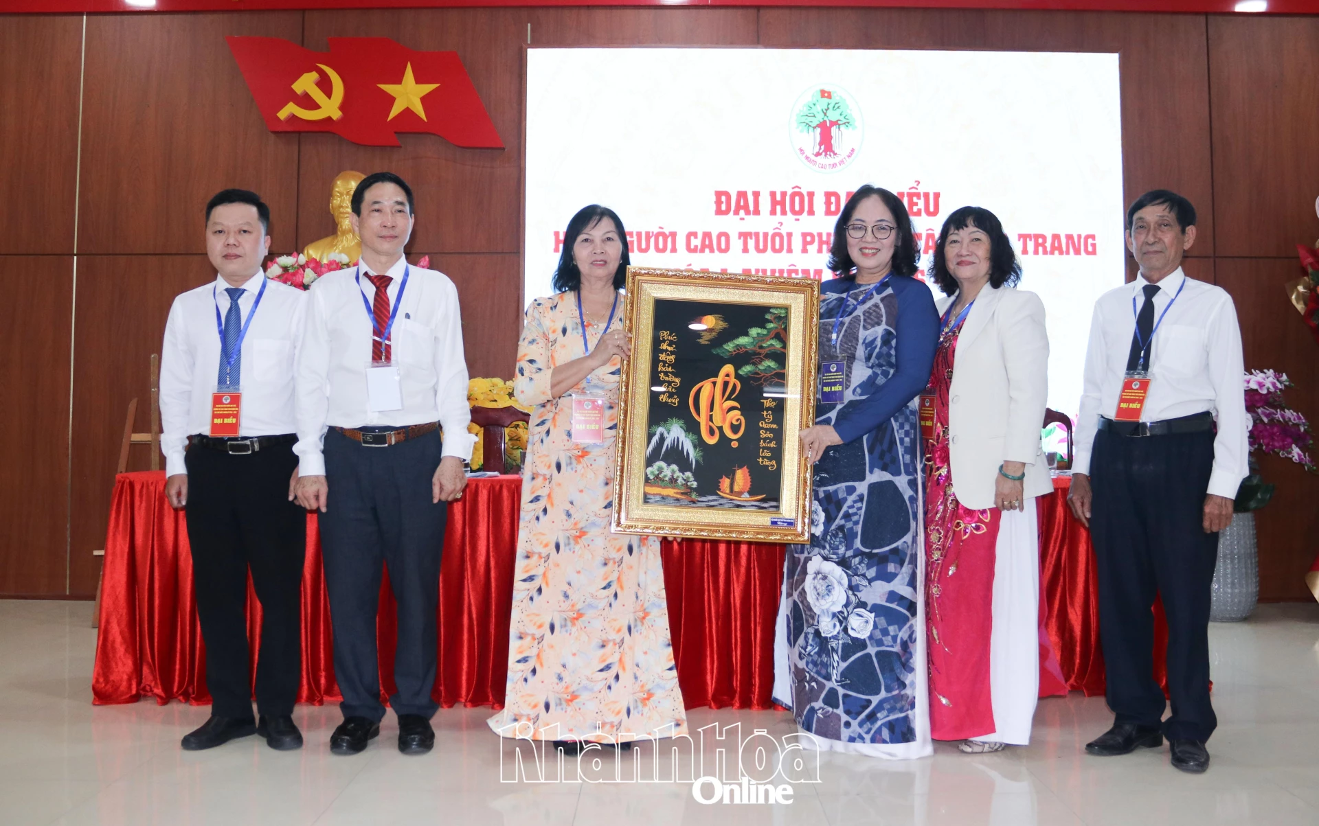 Lãnh đạo Hội Người cao tuổi tỉnh tặng bức tranh chúc mừng đại hội.