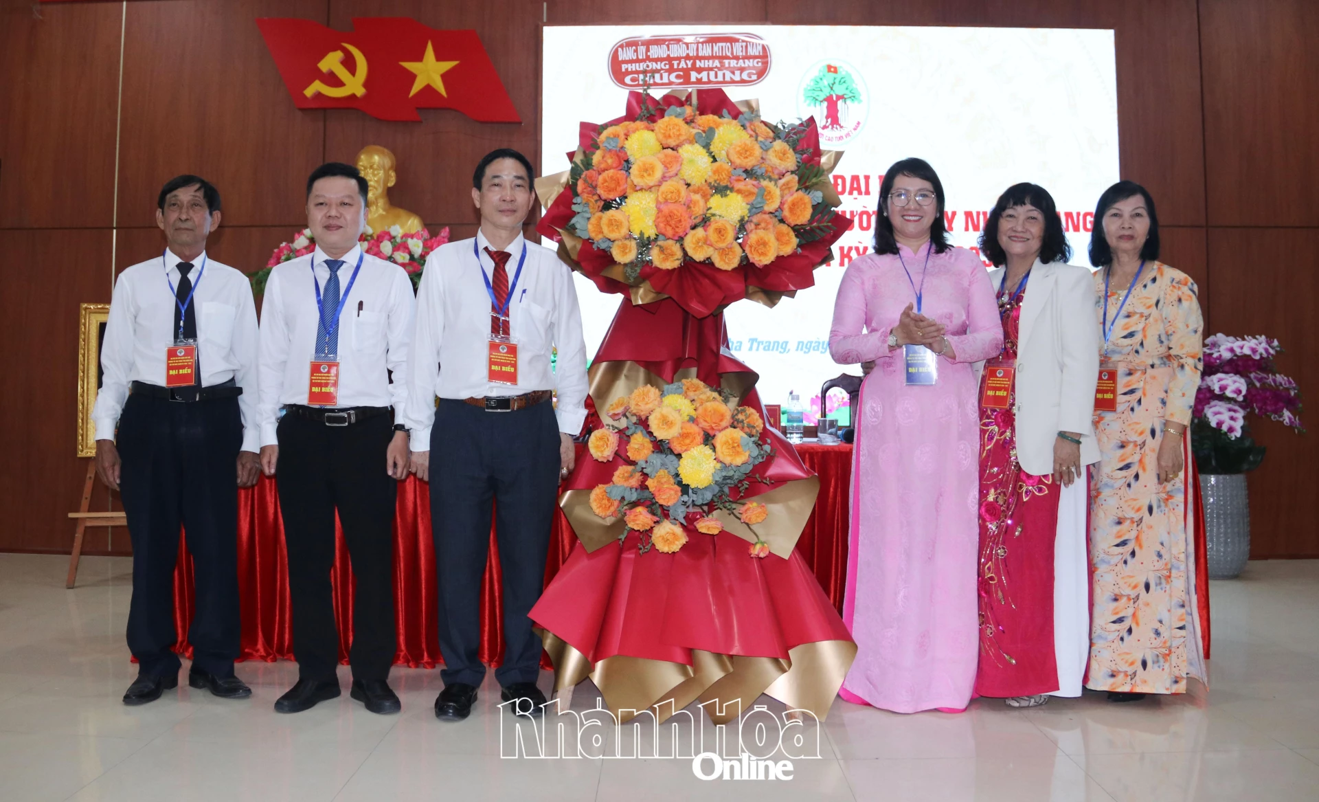 Lãnh đạo Ủy Ban MTTQ Việt Nam phường Tây Nha Trang tặng hoa chúc mừng đại hội.