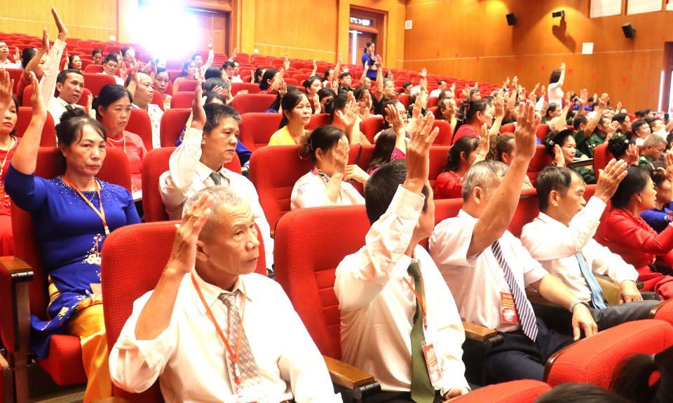 Đại biểu biểu quyết thông qua các nhiệm vụ trọng tâm nhiệm kỳ 2025 - 2030.