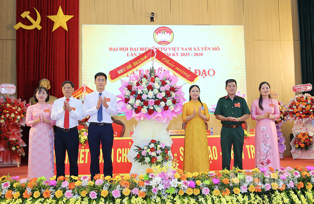 Lãnh đạo xã Yên Mô tặng hoa chúc mừng Đại hội.