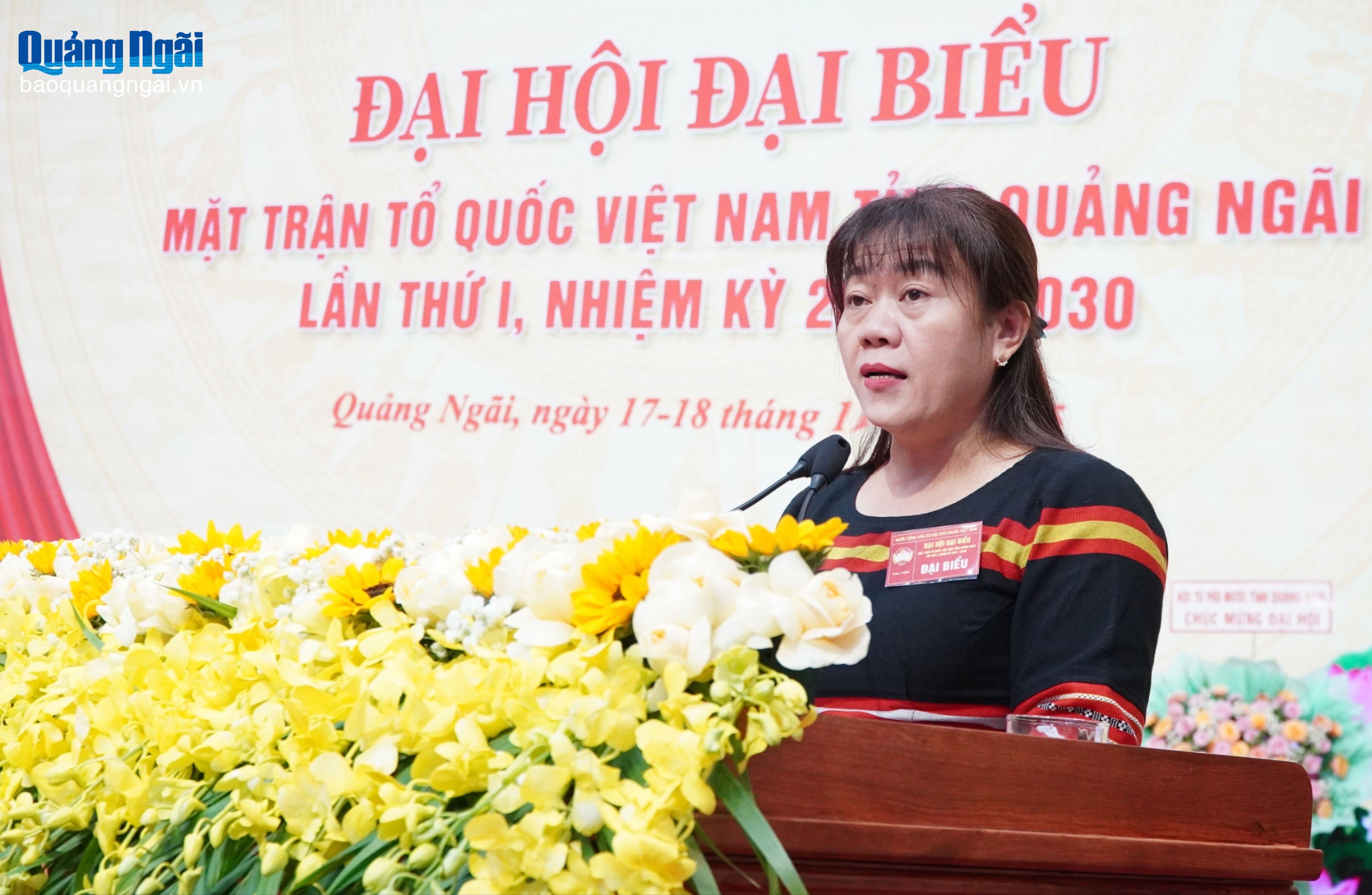 Ủy viên Ban Thường vụ Tỉnh ủy, Phó Chủ tịch Thường trực Ủy ban MTTQ Việt Nam tỉnh Y Thị Bích Thọ thông qua báo cáo kiểm điểm đánh giá kết quả hoạt động Mặt trận trong nhiệm kỳ 2024 - 2029.
