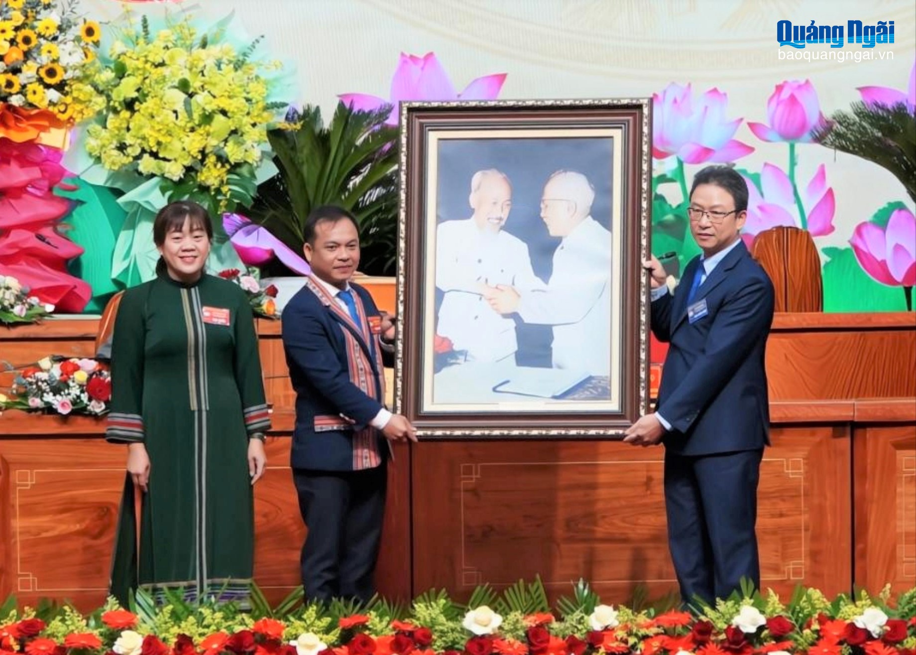 Thay mặt Ban Chấp hành Đảng bộ tỉnh, Bí thư Tỉnh ủy Hồ Văn Niên tặng Đại hội Bức trướng mang dòng chữ “Đoàn kết - Dân chủ - Đổi mới - Phát triển”.
