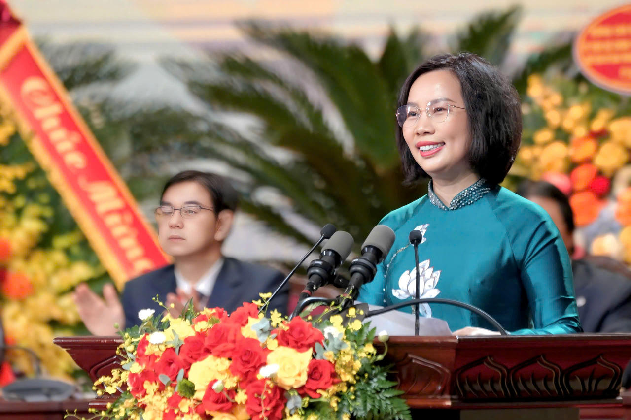 Chủ tịch Ủy ban MTTQ Việt Nam TP Hà Nội Bùi Huyền Mai phát biểu tại Đại hội.