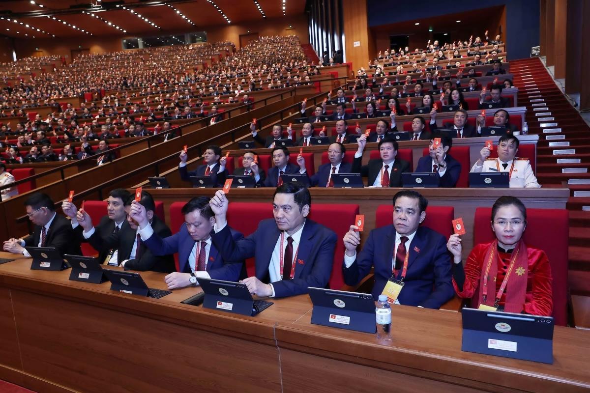 Đại hội đã biểu quyết tán thành, nhất trí cao thông qua Báo cáo thẩm tra tư cách đại biểu Đại hội XIV của Đảng do Ban Thẩm tra tư cách đại biểu trình. Theo đó, tất cả 1.586 đại biểu được triệu tập dự Đại hội đều đủ tư cách đại biểu dự Đại hội.