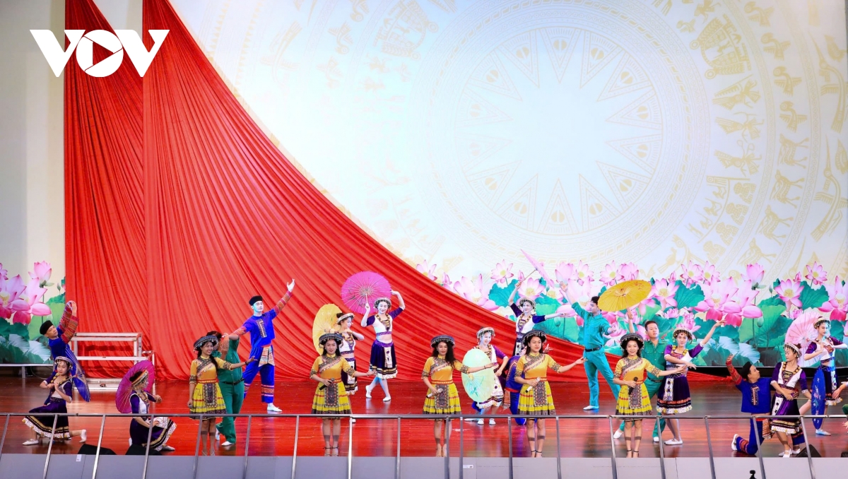 Các nghệ sĩ luyện tập chương trình văn nghệ chào mừng Đại hội