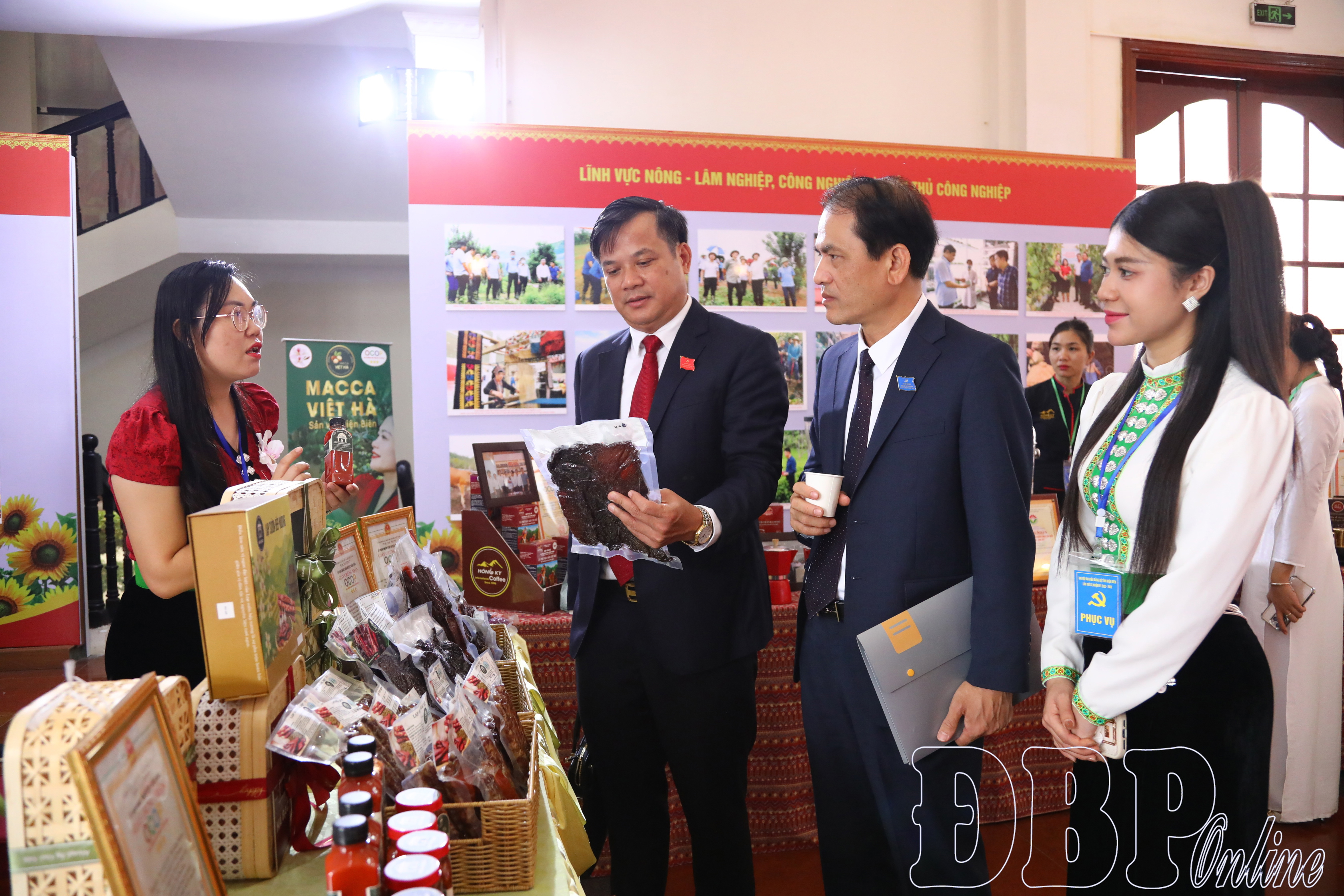 Đại biểu tham quan gian trưng bày sản phẩm đặc sản địa phương.