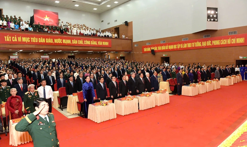 Trong giờ phút trang nghiêm này, với lòng biết ơn vô hạn, chúng ta thành kính tưởng nhớ Chủ tịch Hồ Chí Minh vĩ đại, lãnh tụ thiên tài, Anh hùng giải phóng dân tộc, Danh nhân văn hóa thế giới - Người sáng lập, lãnh đạo và rèn luyện Đảng ta - Người suốt cả cuộc đời luôn dành cho quê hương xứ Nghệ tình cảm sâu nặng, sự quan tâm đặc biệt, những lời căn dặn thiêng liêng.
