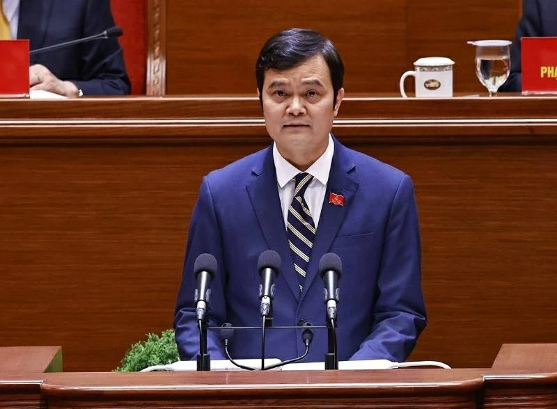 Đồng chí Bùi Quang Huy, Ủy viên dự khuyết BCH Trung ương Đảng, Phó Chủ tịch UBTW MTTQ Việt Nam, Bí thư thứ nhất Trung ương Đoàn TNCS Hồ Chí Minh, trình bày tham luận “Tăng cường giáo dục lý tưởng cách mạng, đạo đức, lối sống văn hóa, bồi dưỡng thanh niên trở thanh lực lượng kế cận xuất sắc của Đảng”. (Nguồn: TTXVN)
