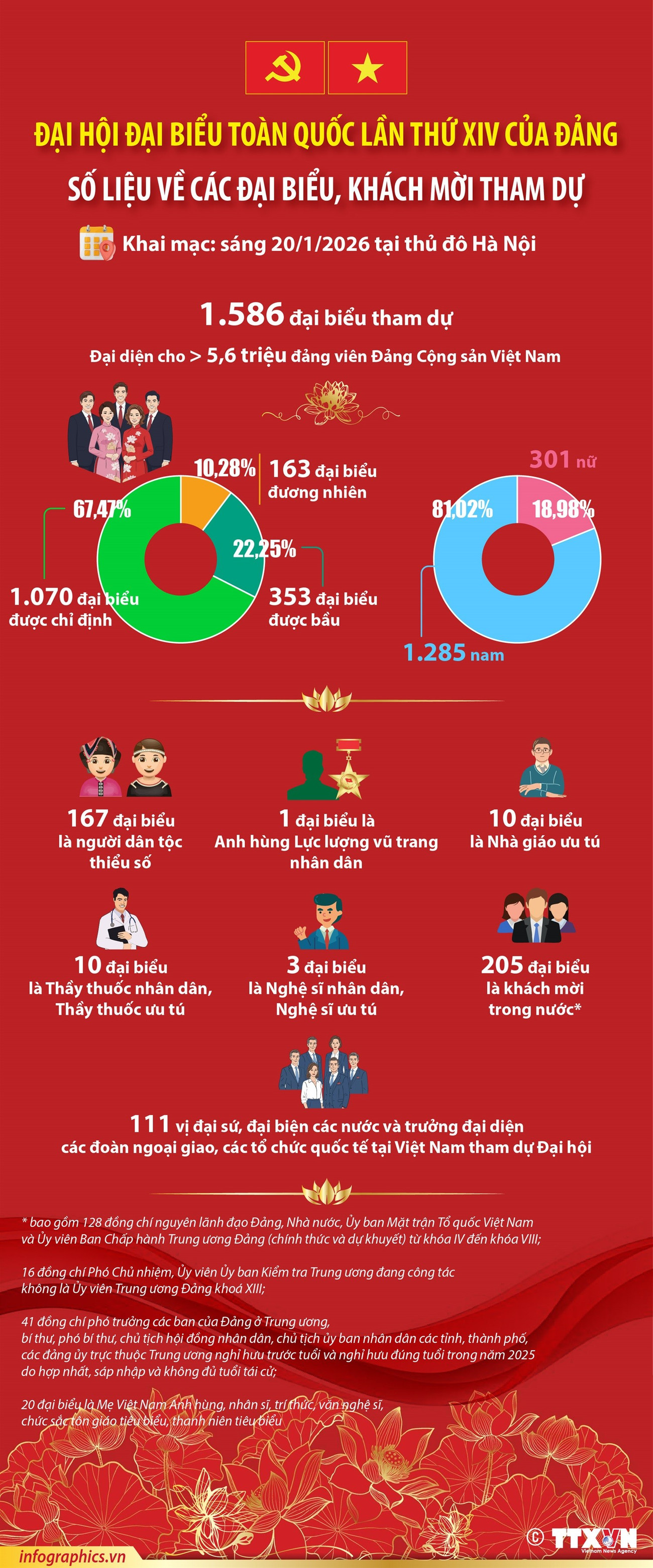 Đại hội Đảng XIV: Số liệu về các đại biểu, khách mời dự Đại hội