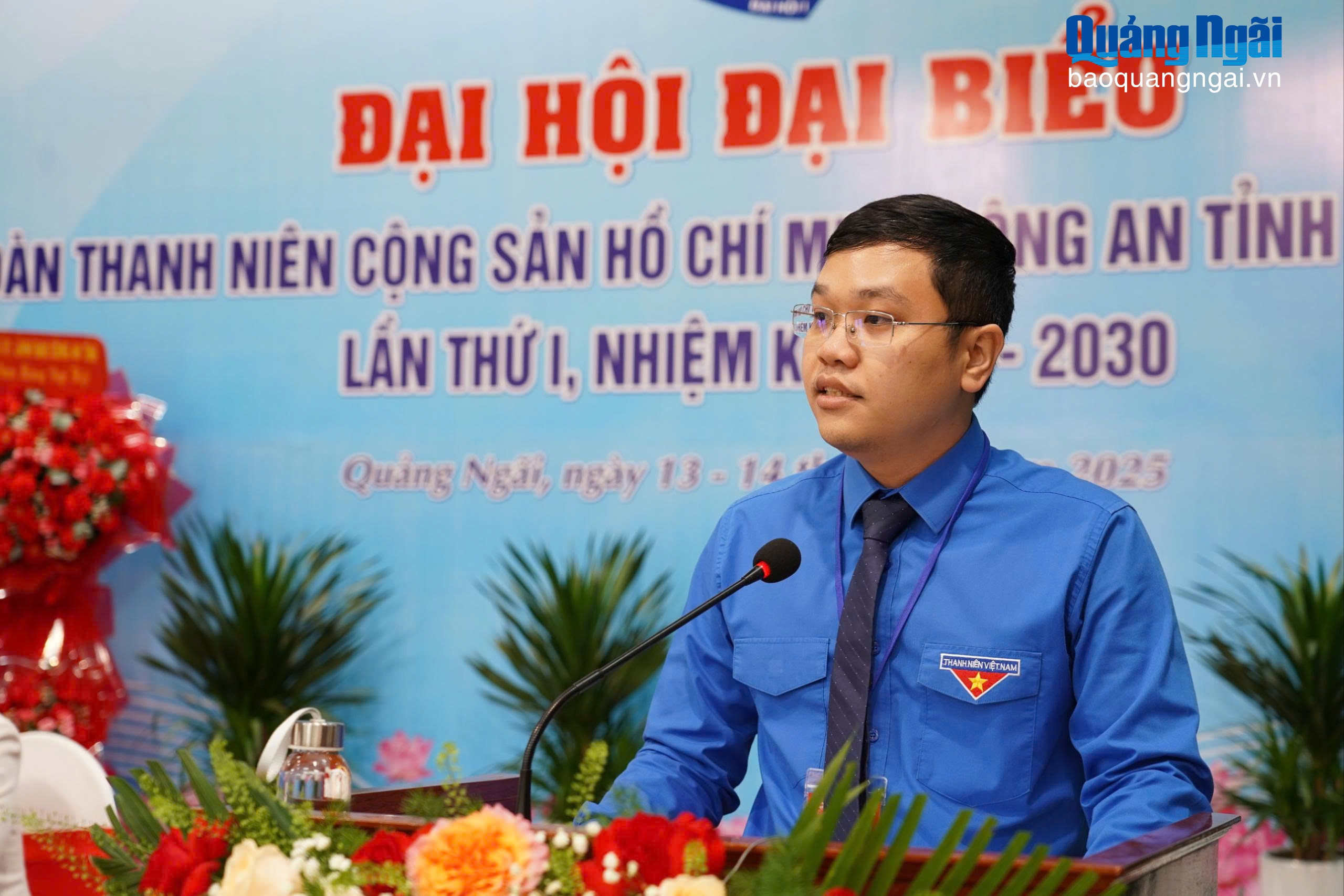 Bí thư Tỉnh Đoàn Nguyễn Văn Mạnh phát biểu tại đại hội. Ảnh QUANG THÀNH