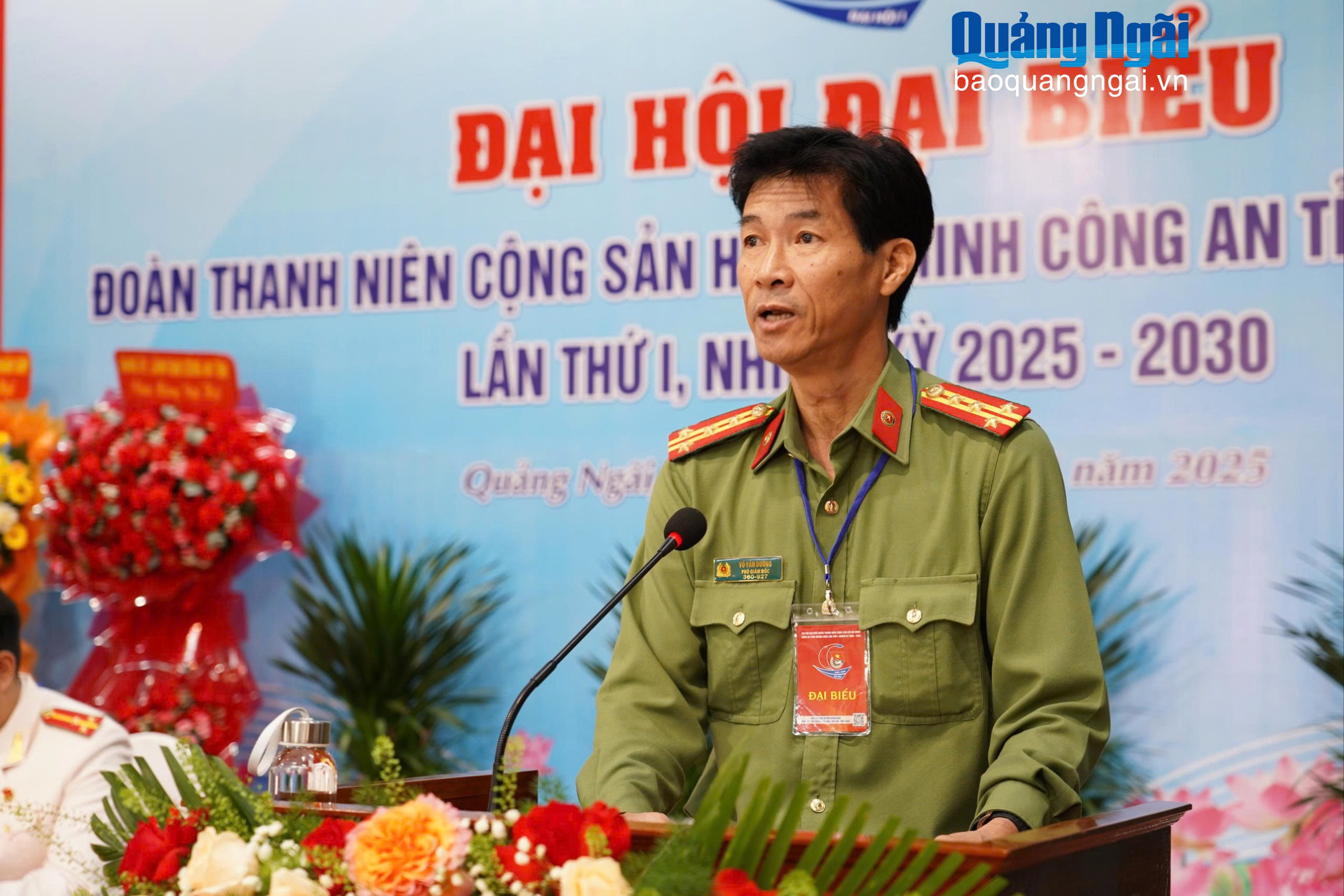 Trong 2 ngày (13 - 14/11), Công an tỉnh Quảng Ngãi tổ chức Đại hội đại biểu Đoàn TNCS Hồ Chí Minh Công an tỉnh Quảng Ngãi lần thứ I, nhiệm kỳ 2025 - 2030. Dự và chỉ đạo Đại hội có Đại tá Võ Văn Dương, Ủy viên Ban Thường vụ Đảng ủy, Phó Giám đốc Công an tỉnh.