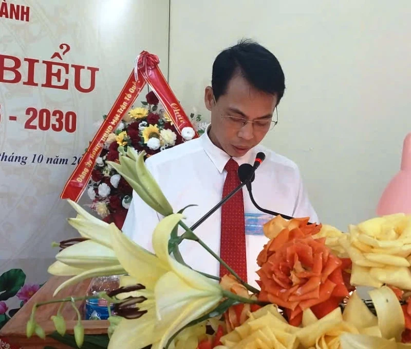 Phó Bí thư Đảng ủy, Chủ tịch UBND xã Tân Thành Lê Hoàng Cường phát biểu chỉ đạo Đại hội.