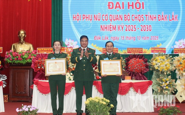 Trao Bằng khen của Tổng cục Chính trị QĐND Việt Nam tặng tập thể và cá nhân Hội Phụ nữ cơ quan Bộ CHQS tỉnh Đắk Lắk.