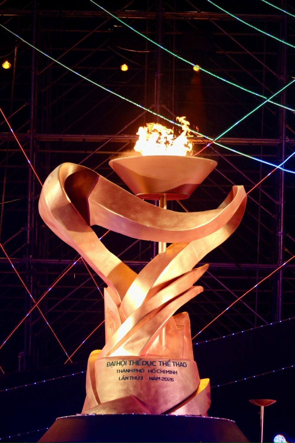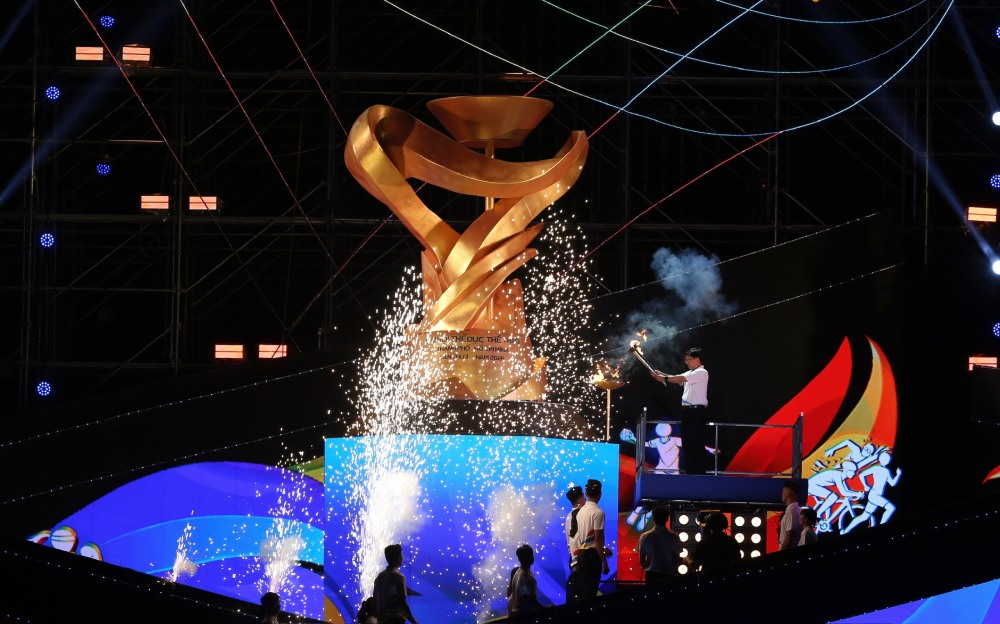 Ngọn đuốc đại hội được thắp sáng, đánh dấu thời khắc khai mạc chính thức.