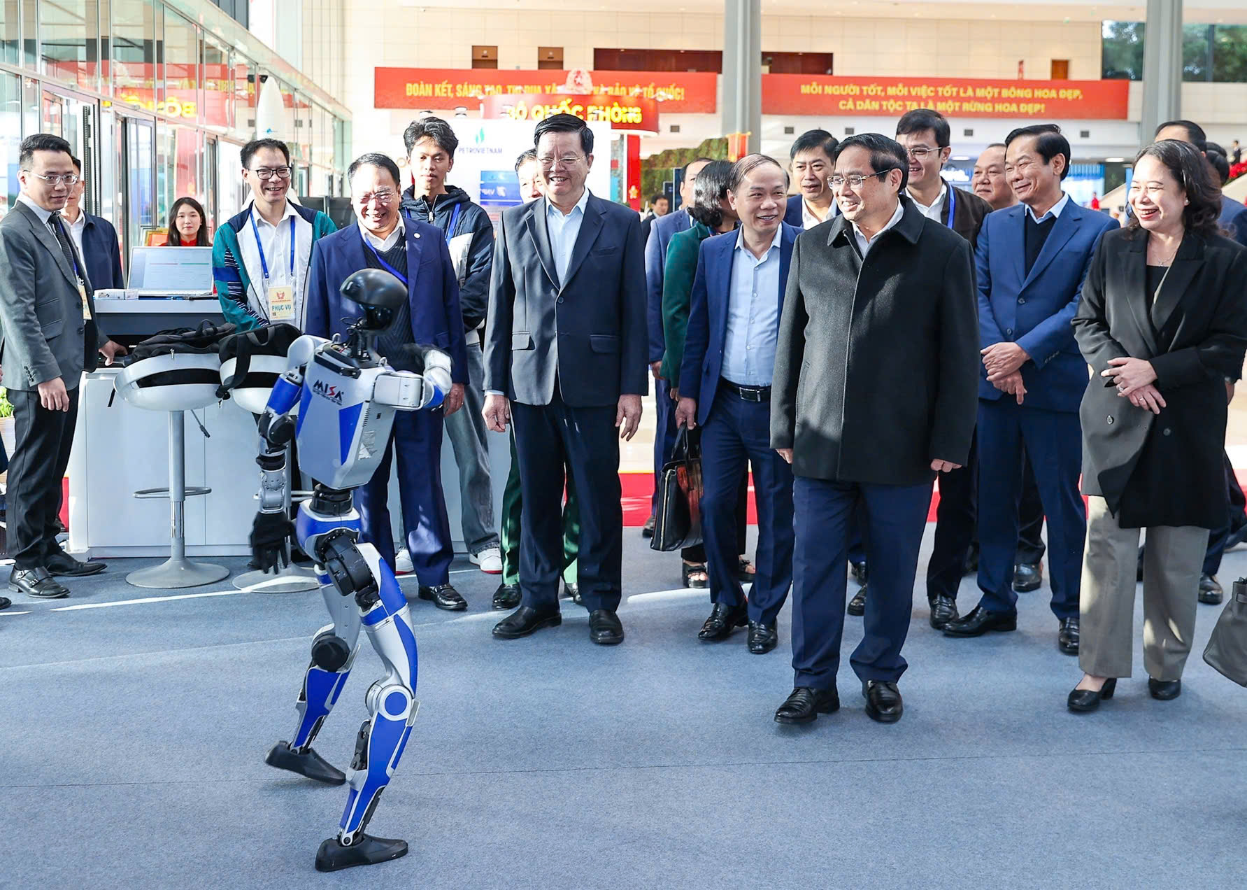 Thủ tướng Phạm Minh Chính và các lãnh đạo bộ, ngành kiểm tra công tác chuẩn bị cho đại hội. Ảnh: VIẾT CHUNG