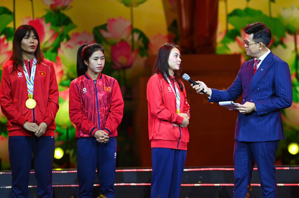 Cũng trong chương trình, các đại biểu, khán giả đã có dịp giao lưu và lắng nghe những câu chuyện của các vận động viên xuất sắc - những gương mặt quen thuộc đại diện cho những vận động viên thành tích cao của thể thao Việt Nam tại SEA Games 33, các vận động viên đã thi đấu hết mình, vượt qua giới hạn của bản thân giành những tấm huy chương danh giá, làm rạng danh Tổ quốc.