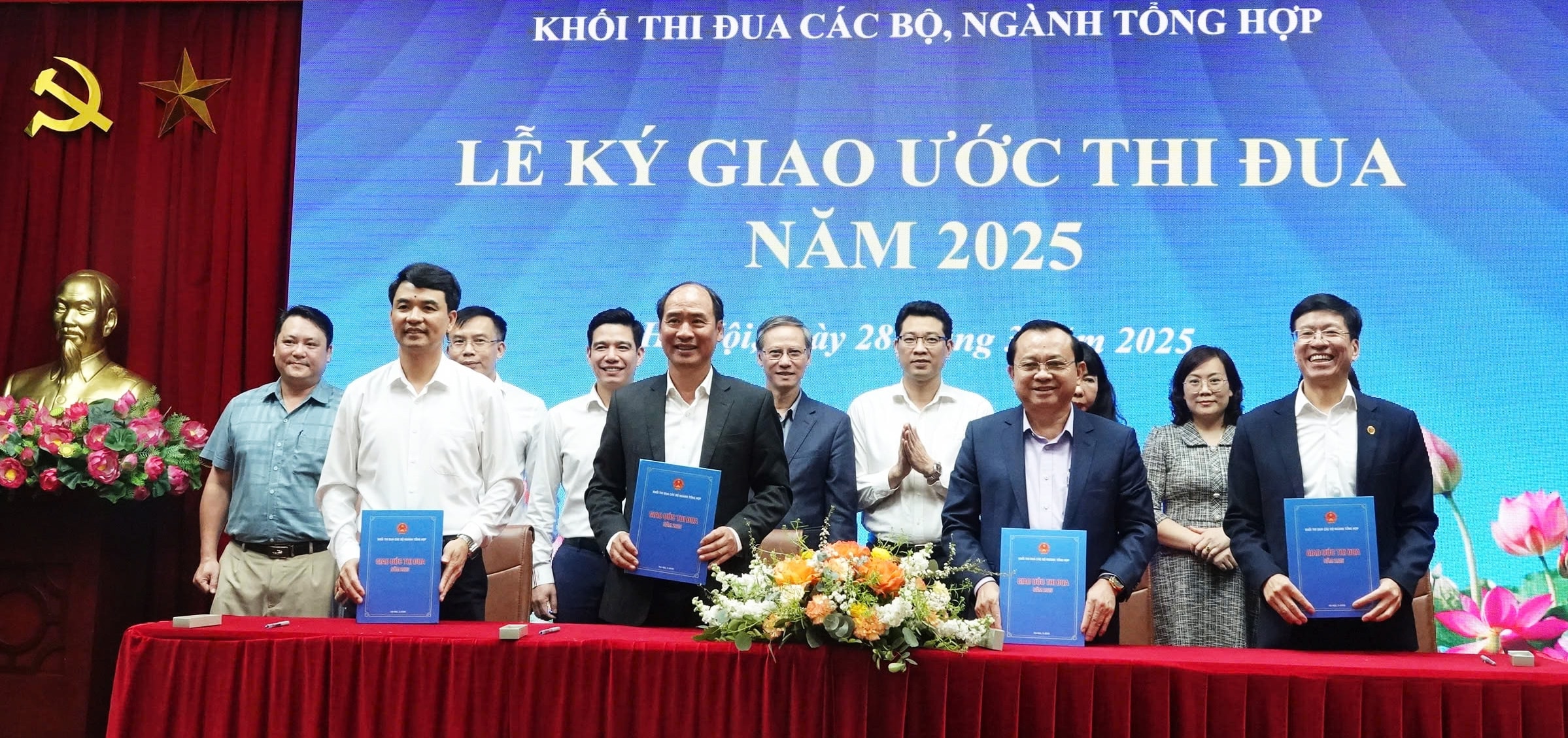 Đại diện các đơn vị Khối thi đua các bộ, ngành tổng hợp ký giao ước thi đua năm 2025 tại Hội nghị tổng kết năm 2024 và triển khai nhiệm vụ năm 2025 ngày 20/3/2025
