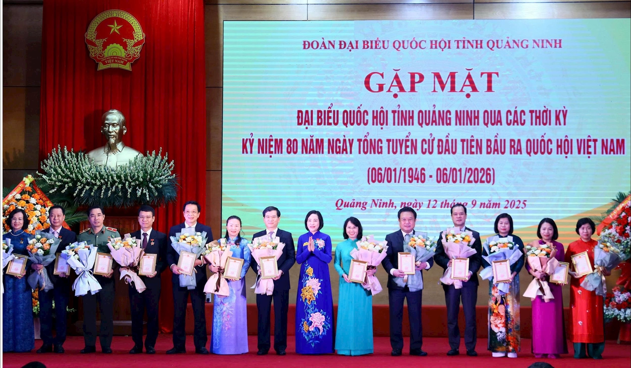 Phó Chủ tịch Quốc hội Nguyễn Thị Thanh trao Kỷ niệm chương "Vì sự nghiệp Quốc hội Việt Nam" tặng ĐBQH tỉnh Quảng Ninh qua các thời kỳ ngày 12/9/2025.