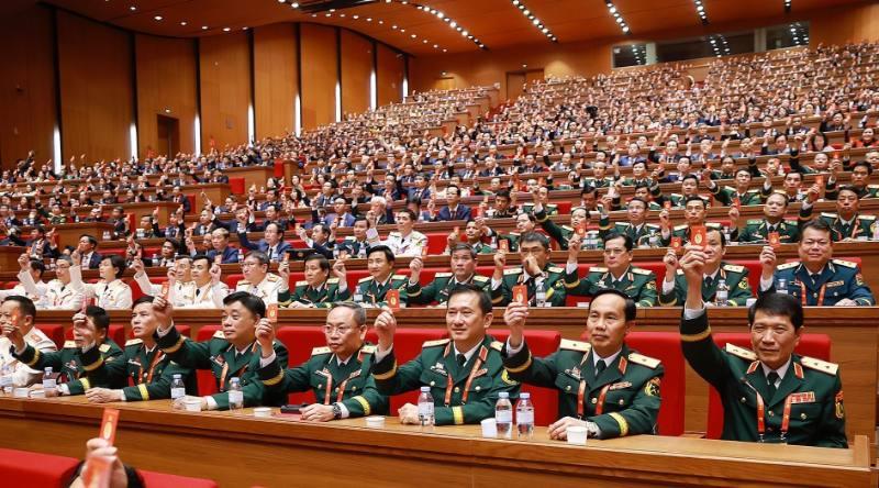 Các đại biểu biểu quyết thông qua danh sách bầu cử Ban Chấp hành Trung ương Đảng khóa XIV. Ảnh: TTXVN