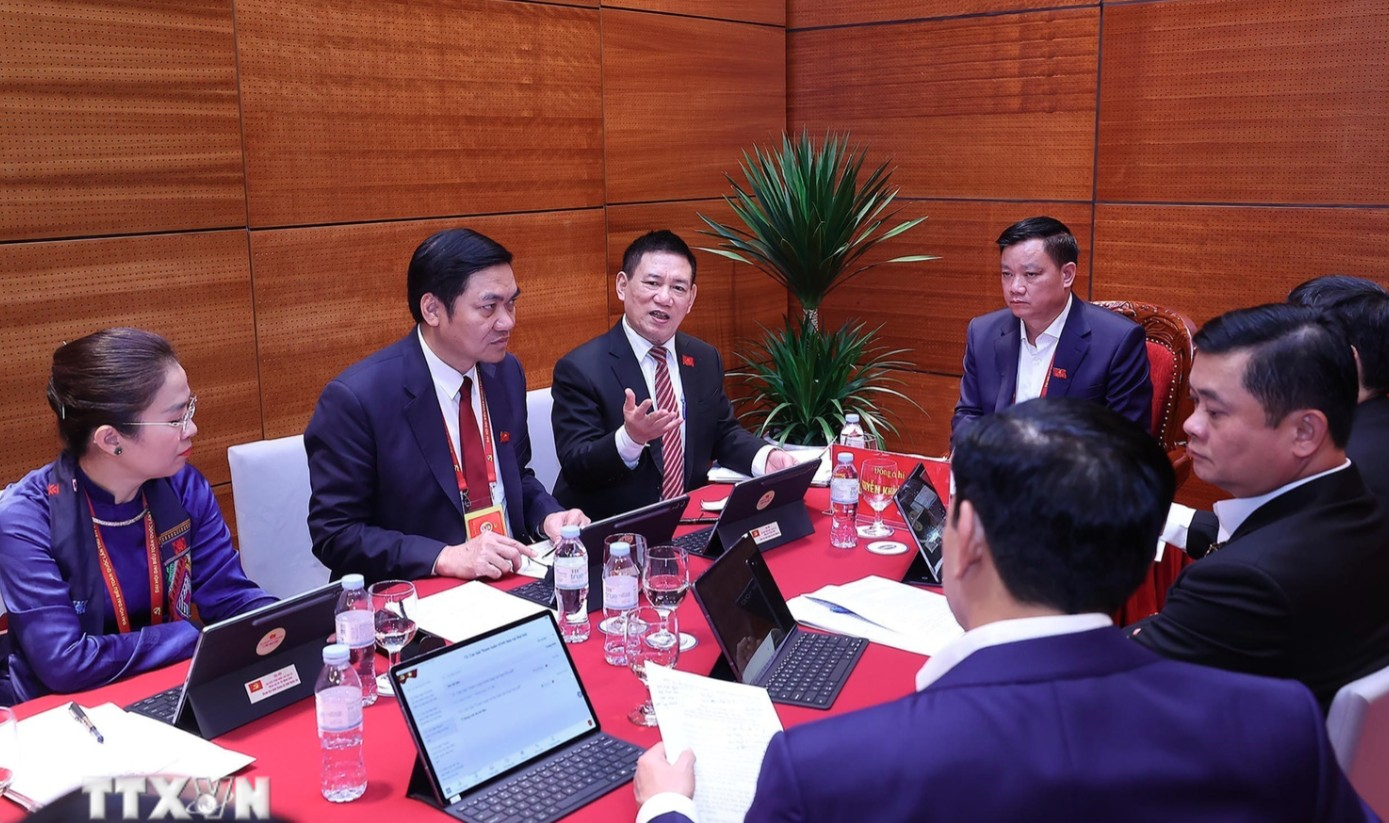 Phó thủ tướng Hồ Đức Phớc và Đoàn đại biểu Đảng bộ tỉnh Nghệ An thảo luận tại Đoàn.
