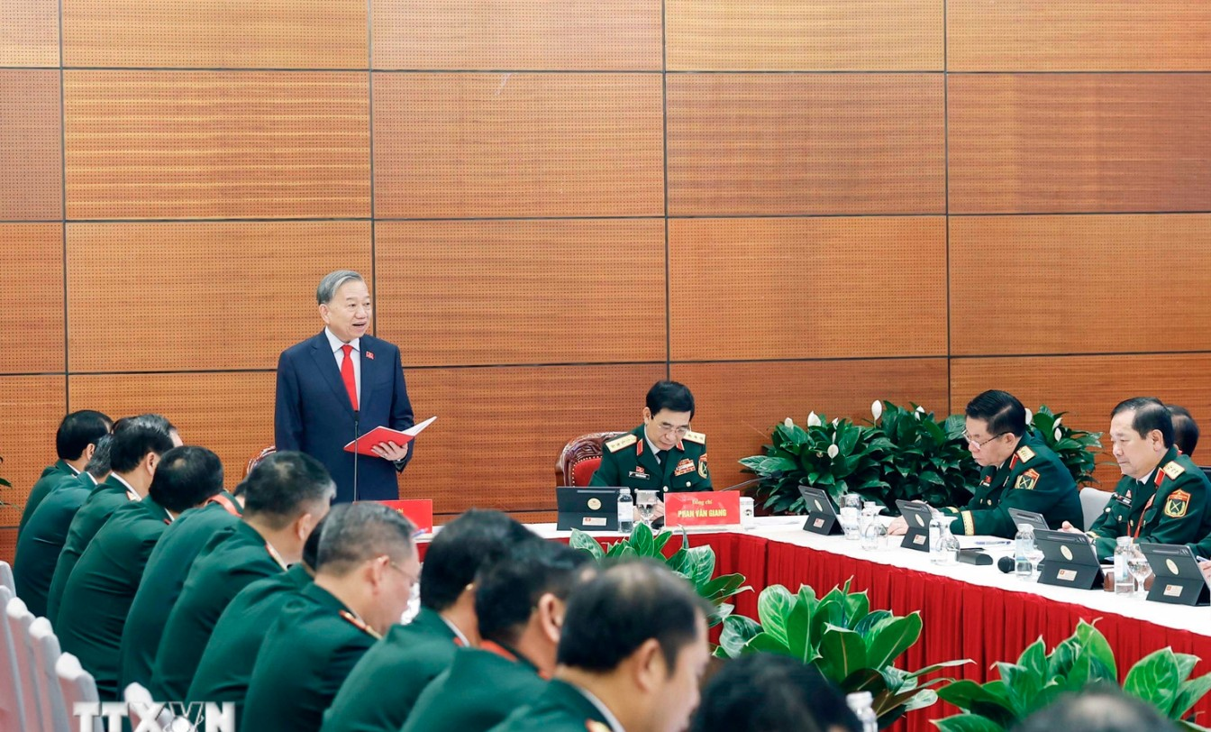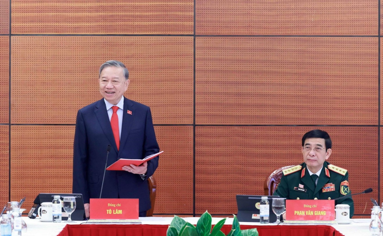 Tổng Bí thư Tô Lâm phát biểu trong buổi thảo luận tại Đoàn Đảng bộ Quân đội.