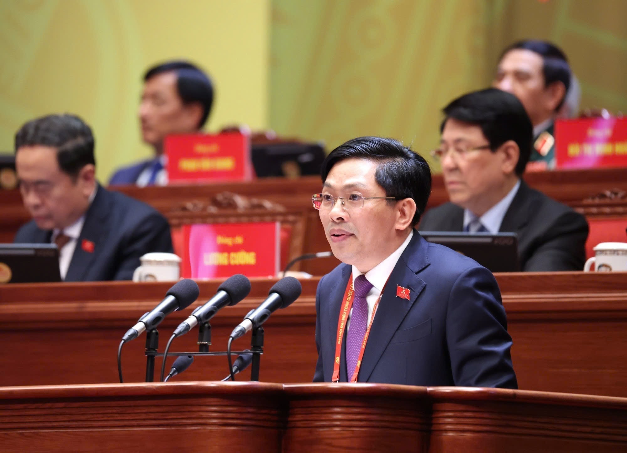 Đoàn đại biểu Đảng bộ Quân đội dự phiên thảo luận tại hội trường về các văn kiện Đại hội, chiều 21/1