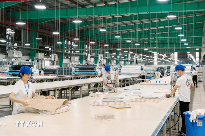 Công ty Trách nhiệm hữu hạn Thiên Sơn Hà Nam tại xã Bắc Lý (Ninh Bình) hoạt động với hơn 300 lao động thường xuyên. (Ảnh: Đại Nghĩa/TTXVN)