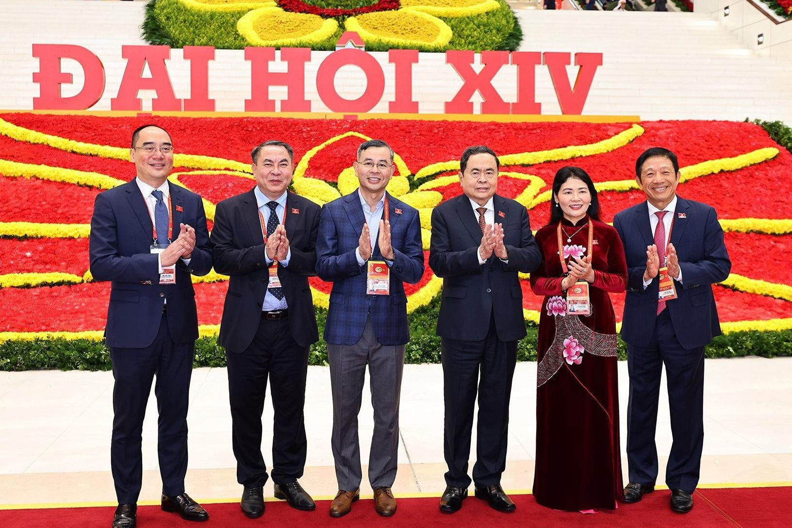 Tổng Kiểm toán nhà nước Ngô Văn Tuấn (thứ 3 từ trái sang) cùng các đại biểu dự Đại hội đại biểu toàn quốc lần thứ XIV của Đảng