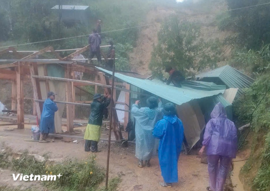 Khẩn trương sở tán nhân dân tại những vùng sạt lở nguy hiểm. (Ảnh: PV/Vietnam+)