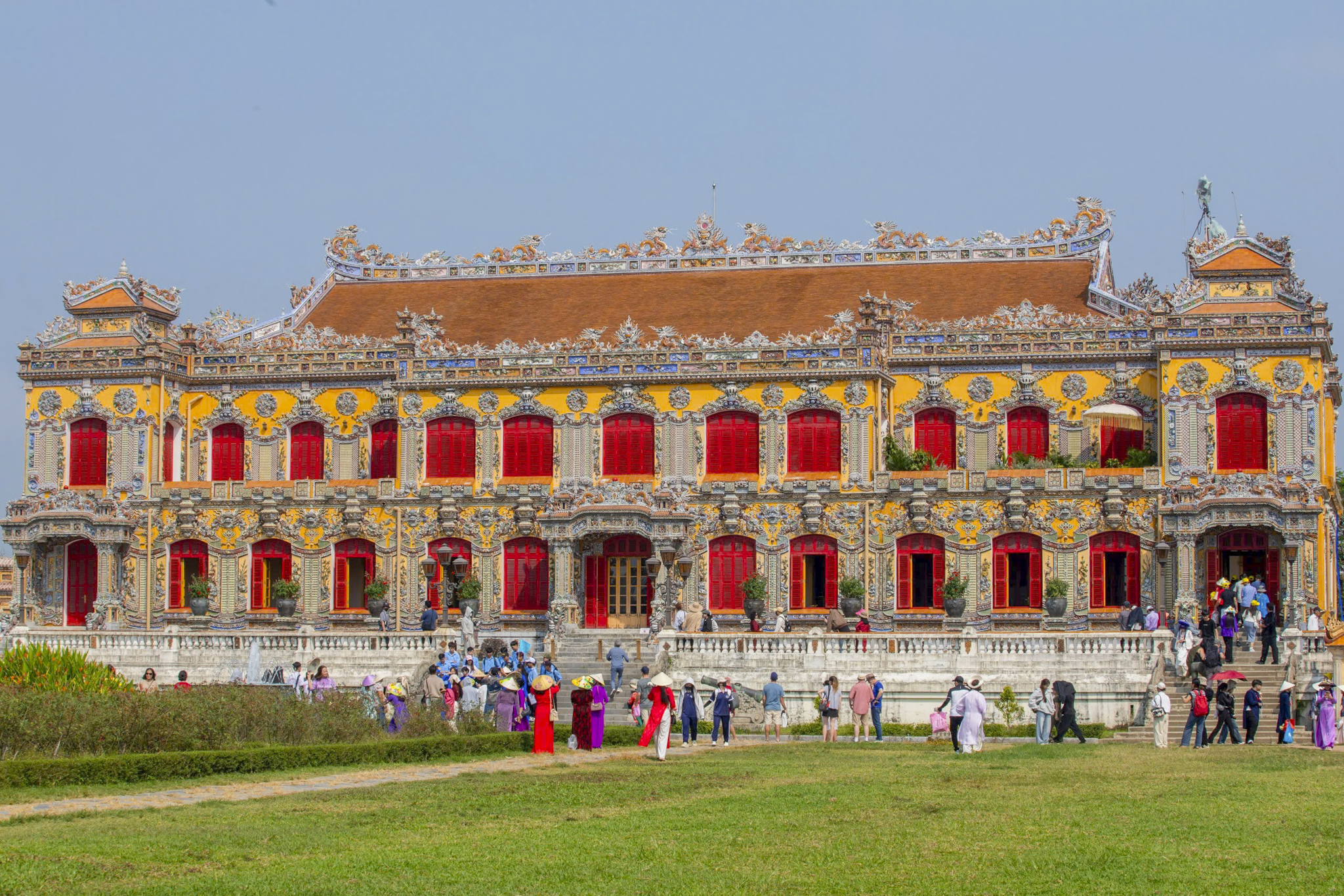 Khu vực lầu Ngũ Phụng và sân điện Thái Hòa là những điểm dừng chân thu hút đông đảo người dân dừng lại chụp ảnh kỷ niệm.