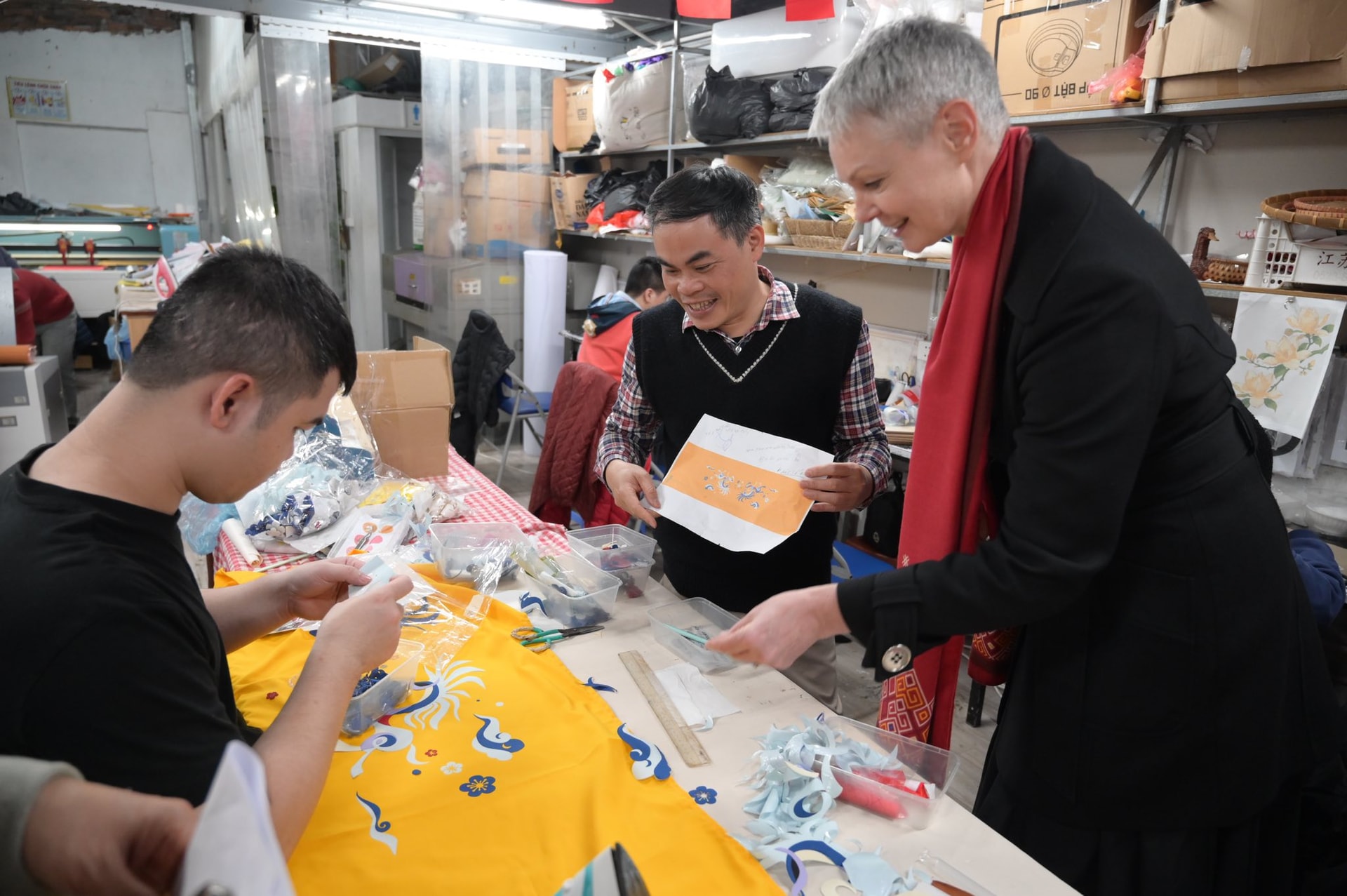 Nhân dịp xuân Bính Ngọ, Đại sứ Na Uy Hilde Solbakken đã tới thăm Làng lụa Vạn Phúc để tìm hiểu về áo dài Việt Nam. Ảnh: Đại sứ quán Na Uy tại Việt Nam.