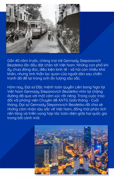 Đại sứ Gennady Stepanovich Bezdetko: Đúng là công việc của tôi gắn bó mật thiết với Việt Nam. Vì thế, tôi đã có cơ hội tận mắt chứng kiến các giai đoạn phát triển khác nhau của đất nước các bạn.
