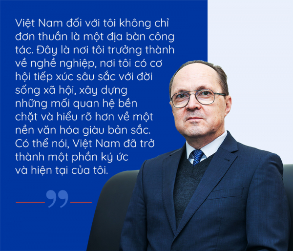 Sau đó, tôi trở lại Việt Nam với tư cách nhà ngoại giao của Tổng Lãnh sự quán Liên Xô, rồi Liên bang Nga. Tổng cộng, tôi đã làm việc tại cả miền Bắc và miền Nam hơn 20 năm. Ngay cả khi đảm nhiệm những vị trí khác nhau tại Bộ Ngoại giao Nga ở Moskva, tôi vẫn theo sát các vấn đề liên quan đến Việt Nam, coi đây là một trong những trọng tâm quan trọng trong công việc của mình.