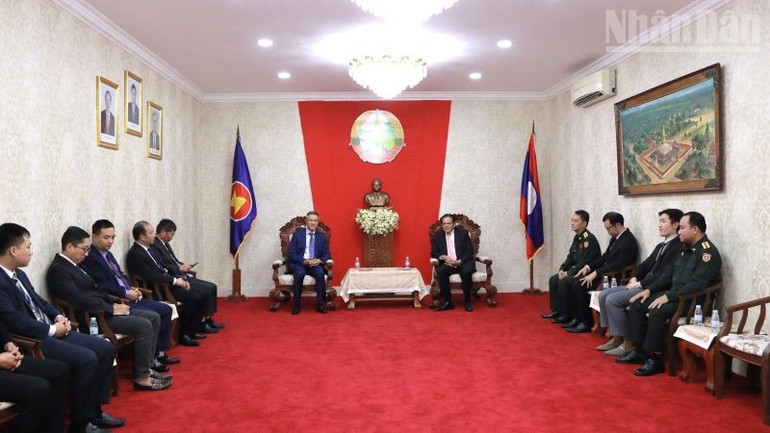 Tại buổi tiếp, Đại sứ Buakeo Phumvongsay bày tỏ vui mừng và vinh dự khi Tổng Bí thư Tô Lâm và Phu nhân, cùng Đoàn đại biểu cấp cao Việt Nam sang dự Lễ kỷ niệm 50 năm Quốc khánh Lào; cảm ơn Đảng, Nhà nước và nhân dân Việt Nam anh em đã luôn dành tình cảm tốt đẹp và sự giúp đỡ chân tình cho đất nước và nhân dân Lào.