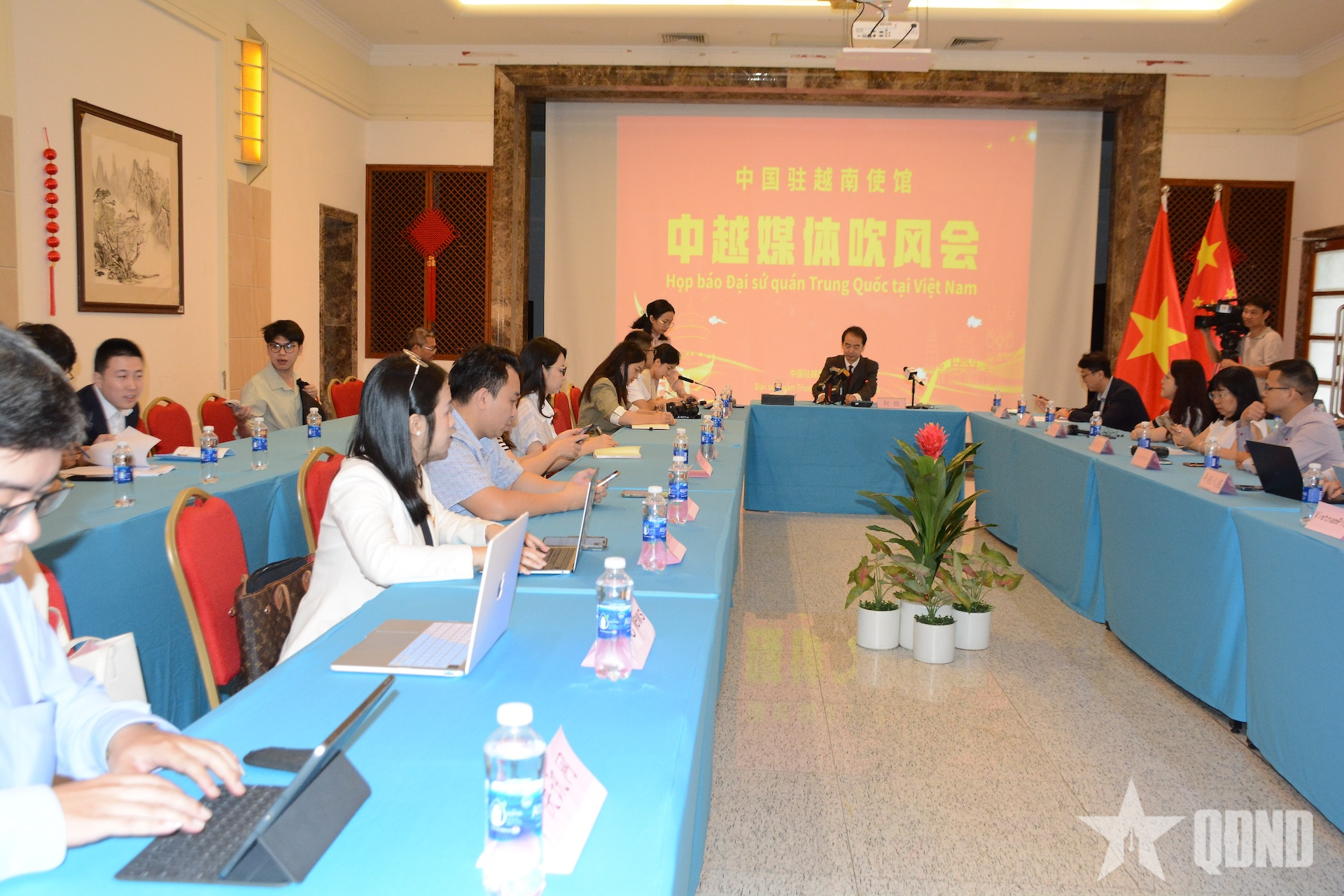 Đại sứ Hà Vĩ trao đổi với các phóng viên.