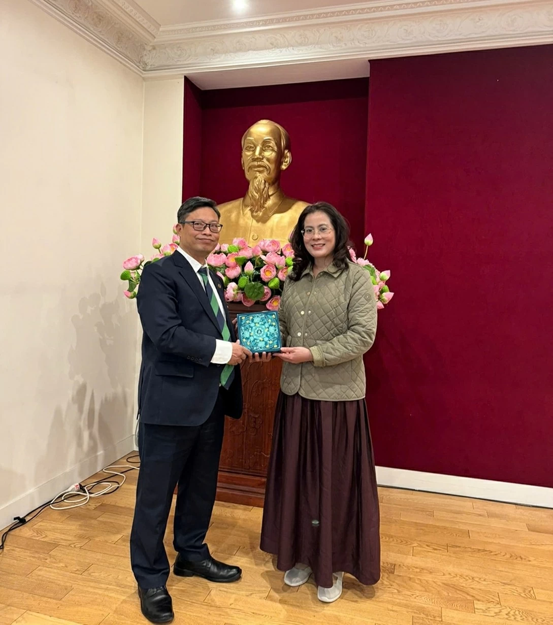 Tham dự buổi tiếp tại Đại sứ quán Việt Nam tại Pháp còn có Trưởng Thương vụ Việt Nam tại Pháp Vũ Anh Sơn và Chủ tịch Hội Doanh nhân Việt Nam tại Pháp-ABVietFrance Nguyễn Hải Nam.