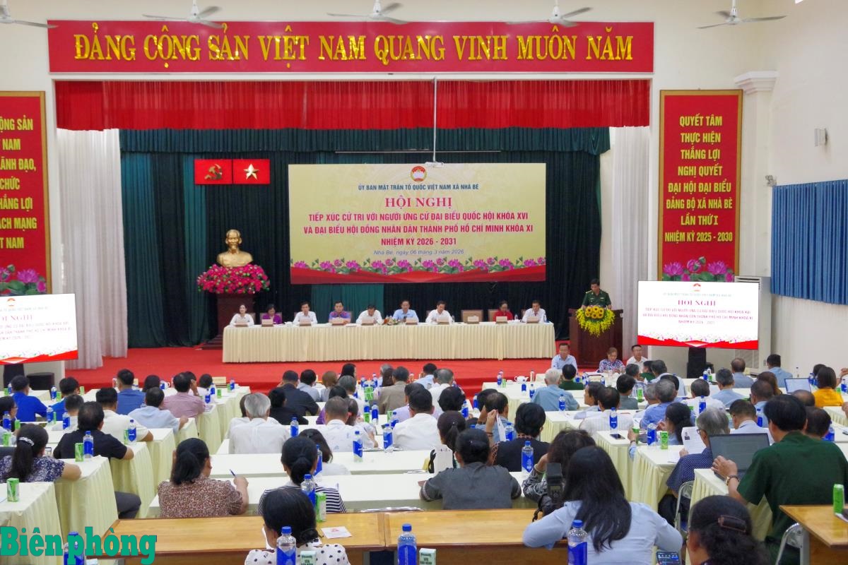 Quang cảnh Hội nghị tiếp xúc cử tri đối với ứng cử Đại biểu Quốc hội khóa XVI và Đại biểu Hội đồng nhân dân Thành phố Hồ Chí Minh khóa XI nhiệm kỳ 2026-2031 tại xã Nhà Bè. Ảnh: Lương Kiểm
