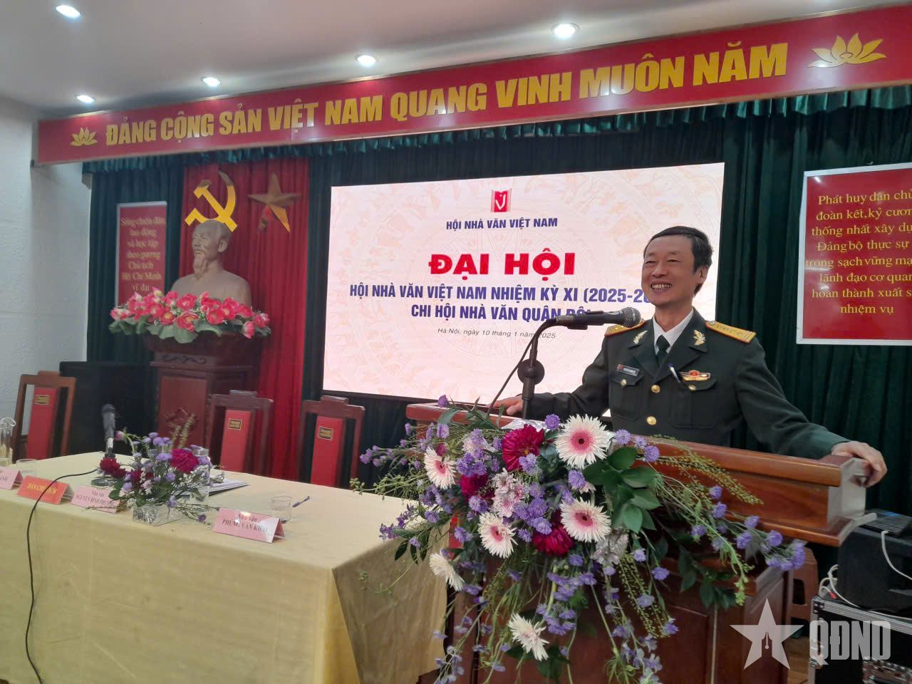Đại tá, PGS, TS Nguyễn Thanh Tú tại Đại hội Hội Nhà văn Việt Nam nhiệm kỳ XI (2025-2030), Chi hội Nhà văn Quân đội.