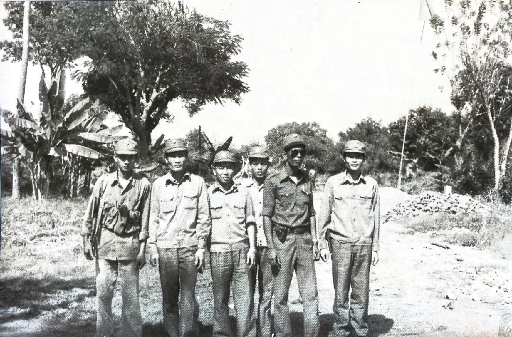 Đồng chí Lê Văn Dũng (đứng thứ ba, từ trái sang) cùng các cán bộ, chiến sĩ làm nghĩa vụ quốc tế trên đất nước Campuchia. Ảnh tư liệu