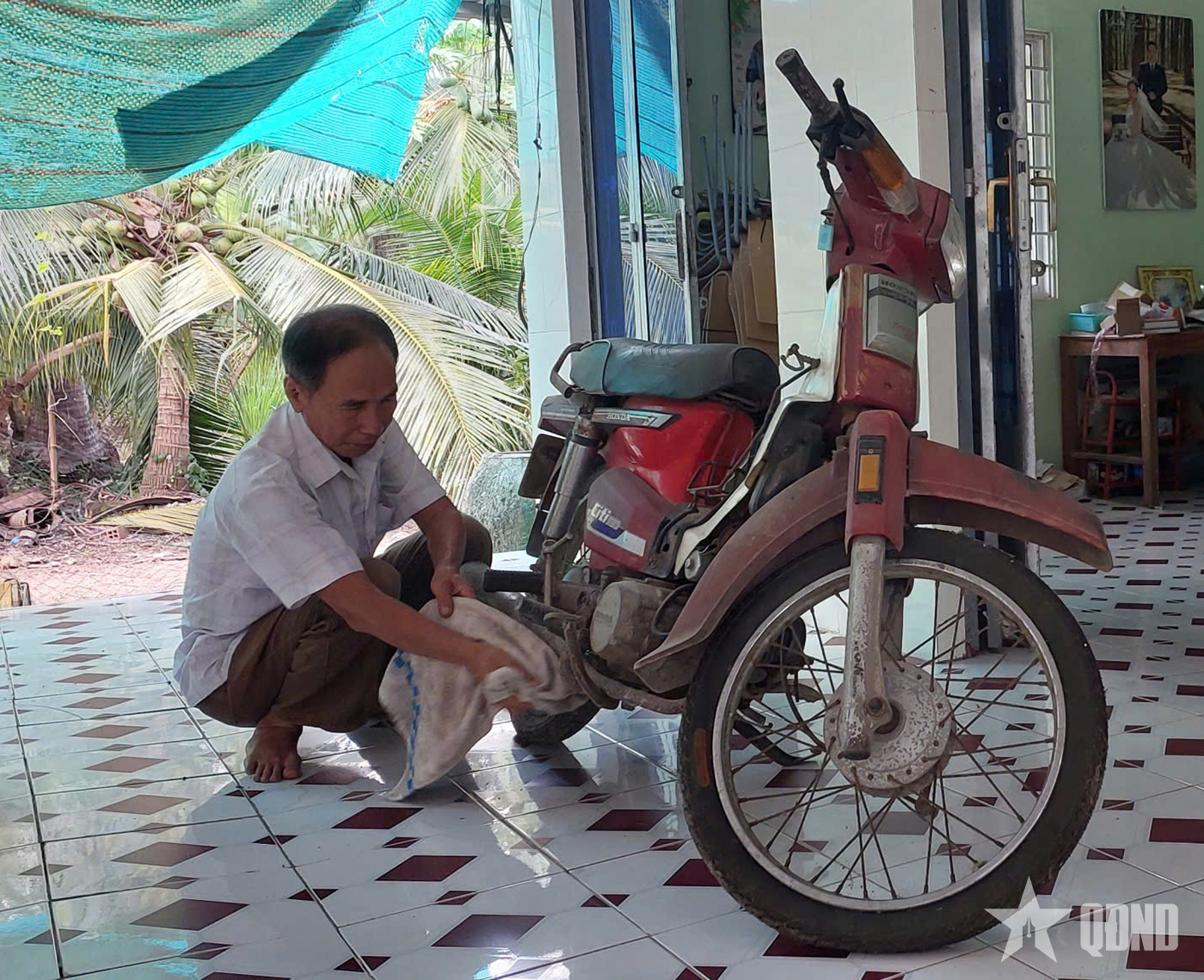 Nắng trưa xứ Dừa rọi qua kẽ lá, hắt lên chiếc xe máy cũ vẫn được đặt gọn trong góc nhà, như một chứng nhân lặng lẽ của những ngày tháng đã lùi xa hơn 20 năm. Theo lời ông Đặng Thành Minh, nguyên Bí thư Đảng ủy xã Phong Mỹ, chính chiếc xe ấy từng theo ông len lỏi qua những con đường đất quanh xóm nhỏ, chở theo một vị tướng giản dị, luôn đau đáu với đời sống quê hương - Đại tướng Lê Văn Dũng.