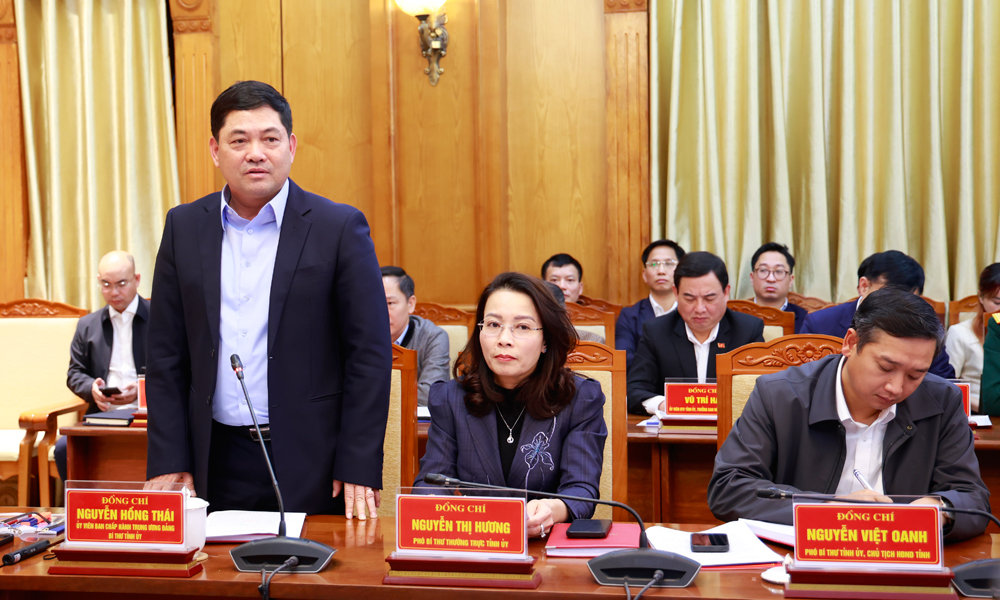 Đồng chí Nguyễn Hồng Thái phát biểu tại buổi làm việc.