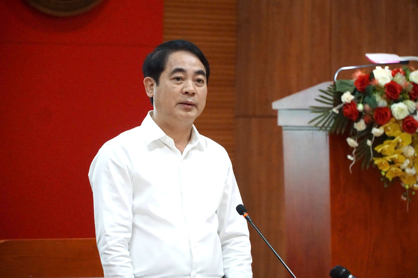 Phó Bí thư Thường trực Tỉnh ủy Khánh Hòa Hồ Xuân Trường báo cáo tại buổi làm việc.