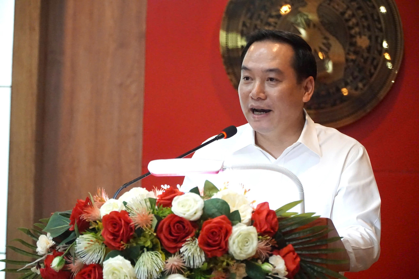 Bí thư Tỉnh ủy Khánh Hòa Nghiêm Xuân Thành phát biểu tại buổi làm việc.