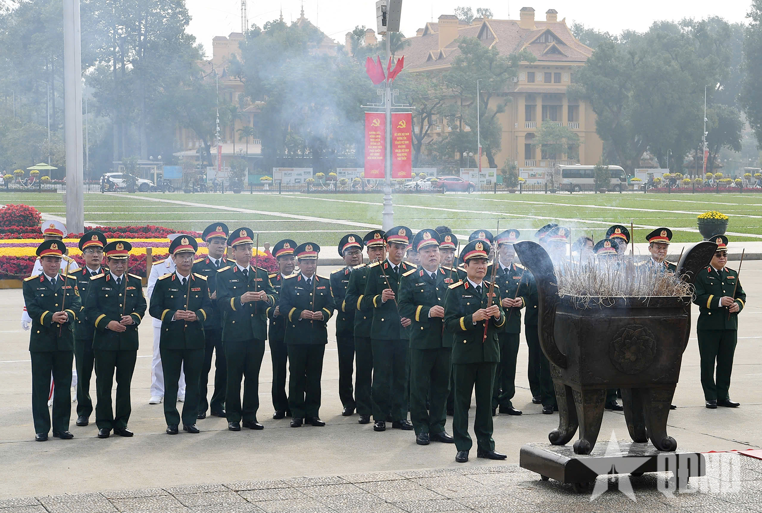 Đại tướng Nguyễn Tân Cương và các đại biểu vào Lăng viếng Chủ tịch Hồ Chí Minh. Ảnh: Phú Sơn